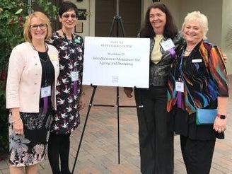 At the Montessori Congress in Prague (2017), the founders present the method to delegates from all over the world, including Julien Jayed Lamorte, who decides to bring it to Europe. Bottom photo, left to right: Michelle Bourgeois(†), Gail Eliot, Anne Kelly and Jennifer Brush.